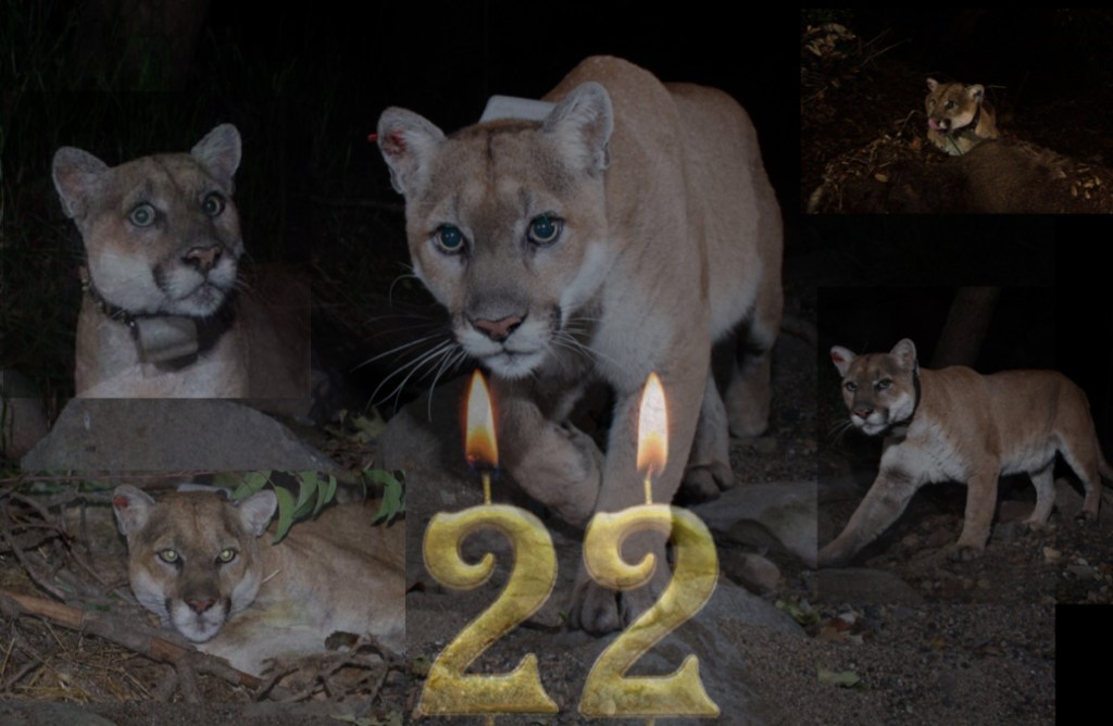 P22 was born about 12 years ago in the Santa Monica Mountains but had to leave in search of his own territory as male mountain lions do. He made an incredible journey crossing two freeways, the 405 and the 101, in search of a new home.